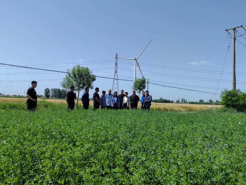 郭庄片区不仅发展旱碱麦,也种植苜蓿经济作物,苜蓿种植给农民带来不错的经济效益。调研组一行,先后参观了苜蓿种植地、苜蓿加工厂,了解苜蓿加工工艺、产量供销等情况。